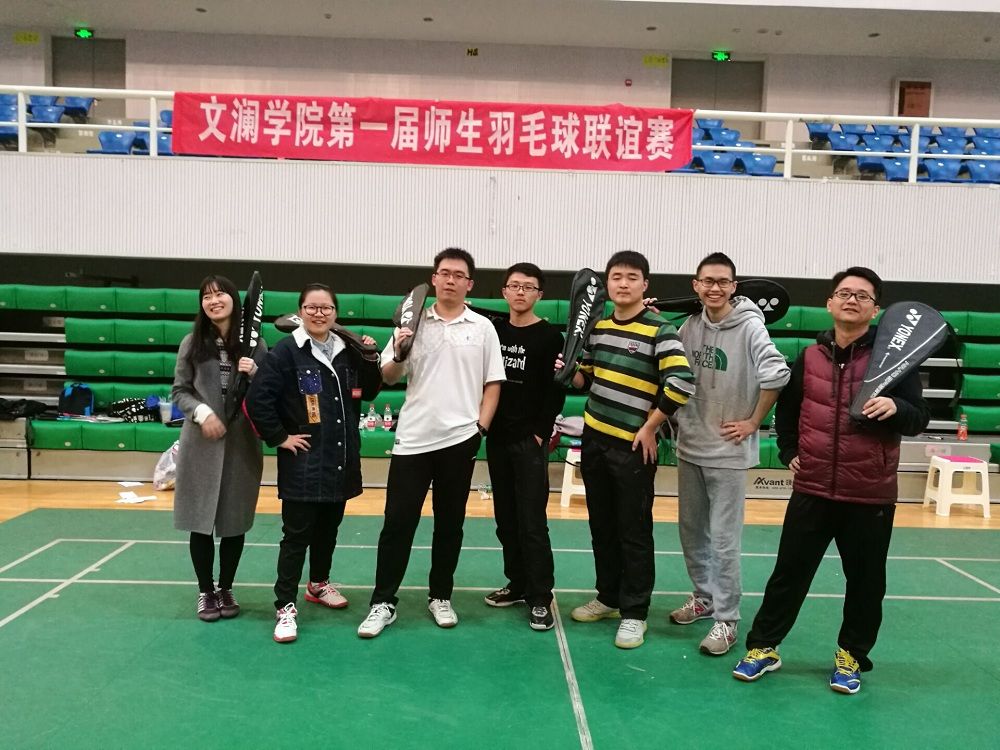 在艺体羽毛球馆举办了第一届师生羽毛球联谊赛。