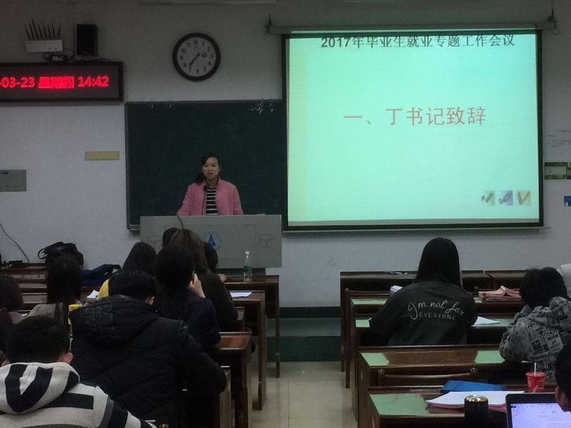 2017年3月23日下午,文澜学院2017届毕业生就业专题工作会在文波楼201室召开。文澜学院党委副书记兼副院长丁奕,毕业生辅导员余利以及2013级本科生参加了此次动员会。