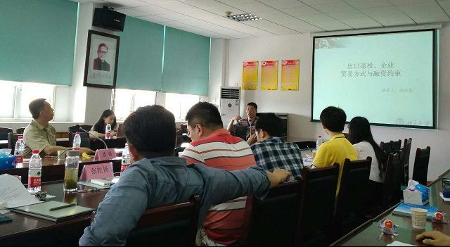 第二位是北京大学经济学院杨汝岱副教授,他的讲座题为“出口退税与企业出口贸易方式选择”,杨老师及他的合作者运用国家税务数据库2008-2011年的数据,实证检验了当出口退税下降时候,企业贸易方式从一般贸易向加工贸易转换的动态过程。同时运用海关数据库得到了相同的结果。证实了企业在贸易方式上选择的动态过程。