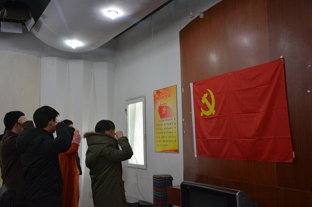根据活动安排,全体党员首先面向党旗,重温入党誓词。