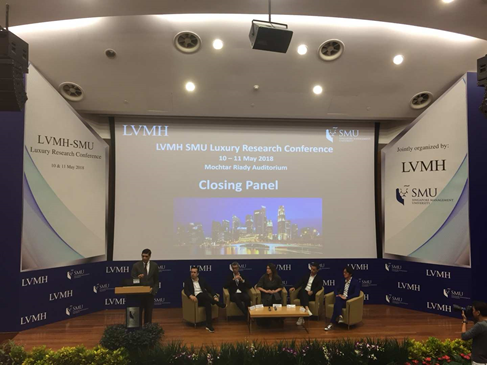本次会议为学界(新加坡管理大学)和业界(LVMH集团)联合主办,会场上能接触到很多业界人士,并了解到他们与学界的一些科研合作需求。这为为未来这方面的创新跨界合作提供了很好的范式和学习依据。 莫婷婷老师积极与与会学者、业界人士交流科研、实用心得,为扩大科研合作人际网络,把握前言学科发展走向,促进未来科研项目更好开展做准备。同时,她也积极宣传中南财经政法大学,对于一些不太了解中南财经政法大学的人士,她积极介绍,并诚挚的邀请这些学者有机会到我校访问,为建设双一流、国际化的学校及学院做铺垫。