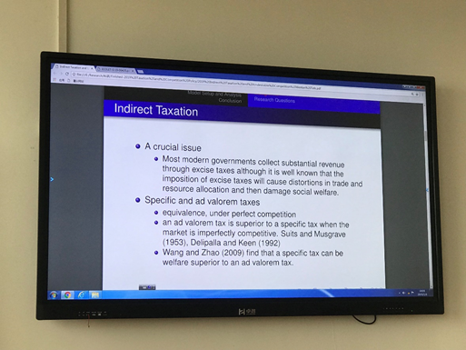 此次报告主要围绕的主题是间接税和竞争政策,研究了非对称寡头垄断在从价征税下的古诺竞争。市场当中有两类企业:高效企业和低效企业。我们发现,高效企业数量的增加出乎意料地伤害了消费者,而低效企业数量的增加并不影响均衡的总产出和价格。此外,当市场需求足够高,或高效企业数量相对较大时,征从量税下的社会福利相较于从价税更优。