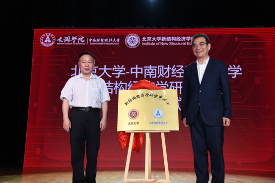 随后,林毅夫教授、杨灿明校长共同为“北京大学-中南财经政法大学新结构经济学研究中心”(筹)成立揭牌。