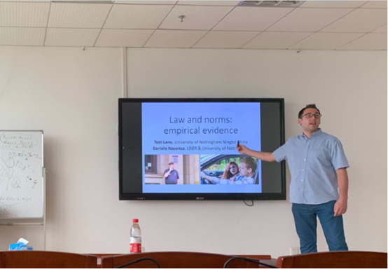 (通讯员:刘耀锴)2019年5月24日,宁波诺丁汉大学经济学助理教授Tom Lane在文澴楼709开展了以“Laws and norms: empirical evidence”为主题的学术讲座。足球现场比分 曾辰航副教授和众多学生参加了本次讲座。