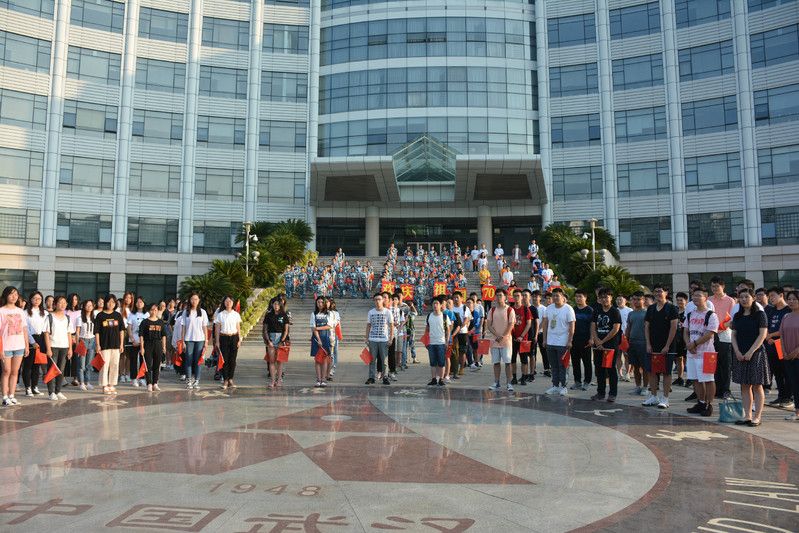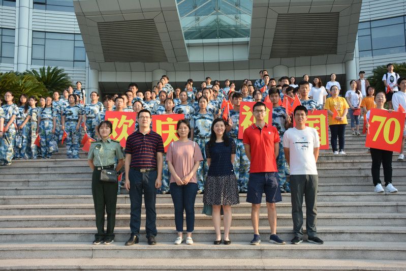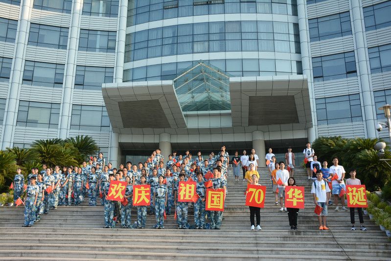 礼赞新中国,讴歌新时代。国旗下,台阶前,文澜学子分年级排成整齐的队伍,站在台阶上的团学志成员摆成“70”,寓意70周年,而在“70”边上,是新生聚成一群,站成了“中国”二字。国旗护卫队的同学准备好国旗,随着《义勇军进行曲》的前奏响起,文澜学子手执旗帜,放声歌唱,炽热的眼神与鲜红的国旗融在一起:“起来,不愿做奴隶的人们.....”高亢的国歌回荡在蓝天白云下,文澜学子满身青春热血,一派庄严肃穆!