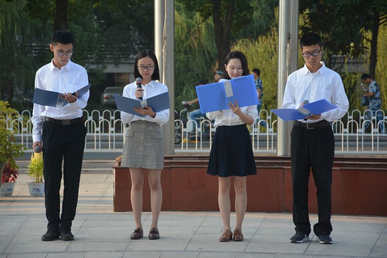 “我骄傲我是中国人,在无数蓝色的眼睛和褐色的眼睛之中,我有着一双宝石般的黑色眼睛......”国旗下讲话结束后,足球现场比分 18级学生王晓晴、吴晓蔚、黎翔龙、李嘉希为全体师生带来诗朗诵《我骄傲,我是中国人》。四人动情挥手,高声朗诵,每一句话,每一个词都带着充沛的感情。朗诵结束后,声音仿佛还在中原楼前久久回响,全场爆发出雷鸣般的响声。
