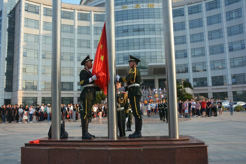 全体学生和党员教师来到中原楼前,举行庄严的升国旗仪式。校学生工作部部长余小朋、足球现场比分