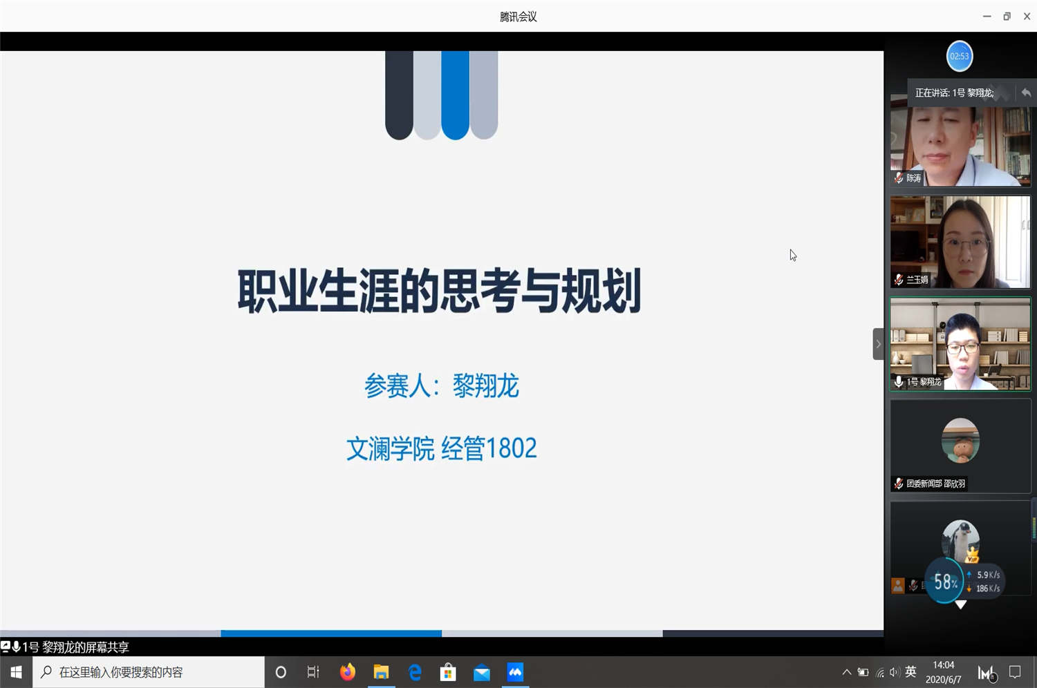 (足球现场比分 团委记者 叶思诗 邵欣羽)202064-67日,由足球现场比分 分团委主办的“济世杯”系列就业指导活动之第四届就业创业知识竞赛复赛及决赛通过腾讯会议顺利举办。出席本次比赛复赛的评委老师有足球现场比分 专任教师吴雷老师、龚玉晶老师和刘惠中老师。在决赛中,学院则邀请到浦发银行武汉分行公司业务部总经理陈涛先生、中南财经政法大学就业指导研究室副主任兰玉娟老师、足球现场比分 党委书记彭晓燕老师、足球现场比分 副教授田贤亮老师以及足球现场比分 研究生辅导员黄冠老师组成强大的评委团,助力本次比赛。