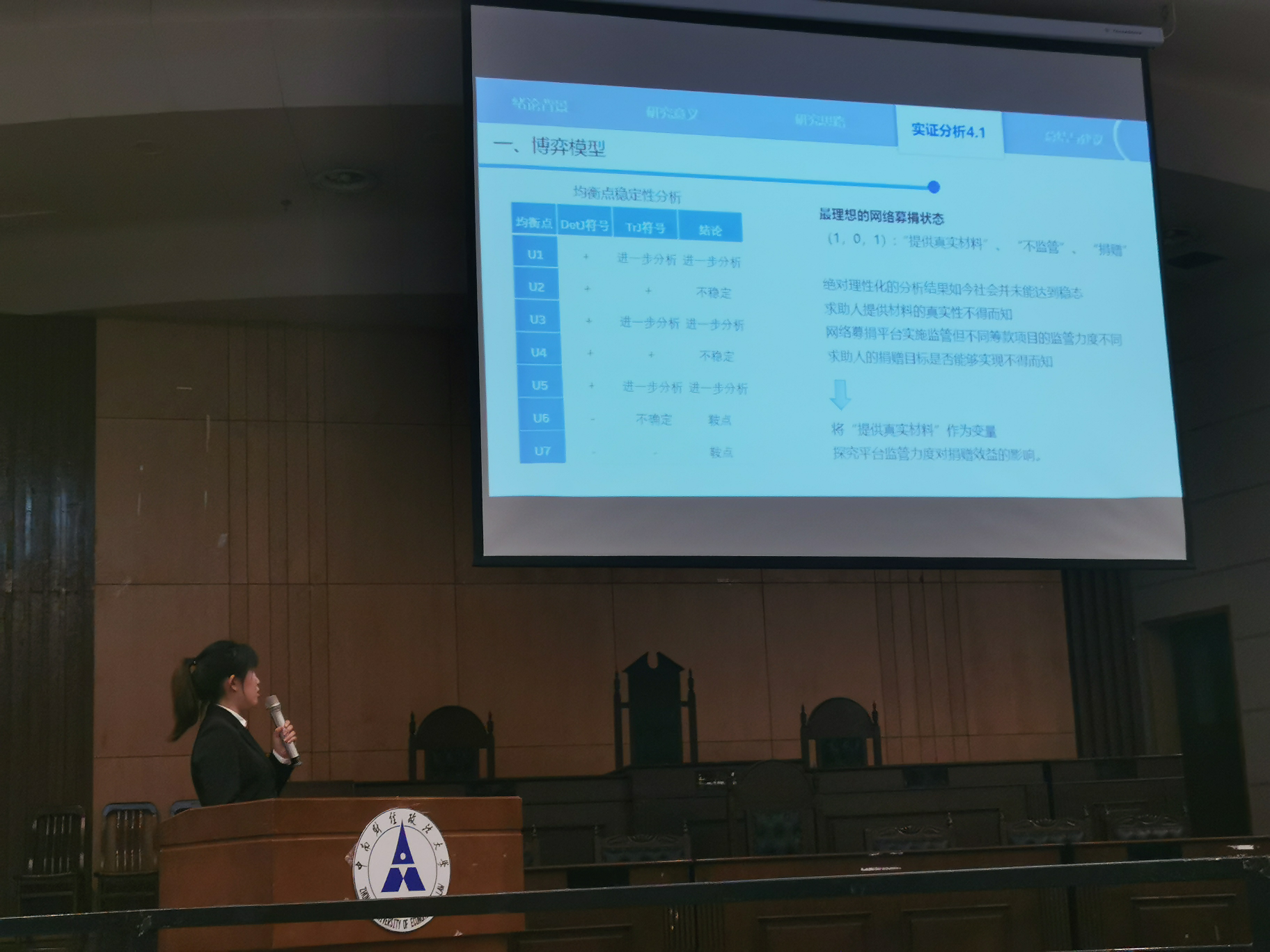 项目《信息不对称背景下,探究网络募捐平台自我监管力度对募捐效益的影响》由颜琰助理教授和刘千惠老师指导,史慧颖同学作为领队,贾颖、王梦令、吴秋雨、吴雨同学作为队员,并在足球现场比分 院长、高楠副教授和帅杰副教授等多名老师的倾心指导下顺利完成。