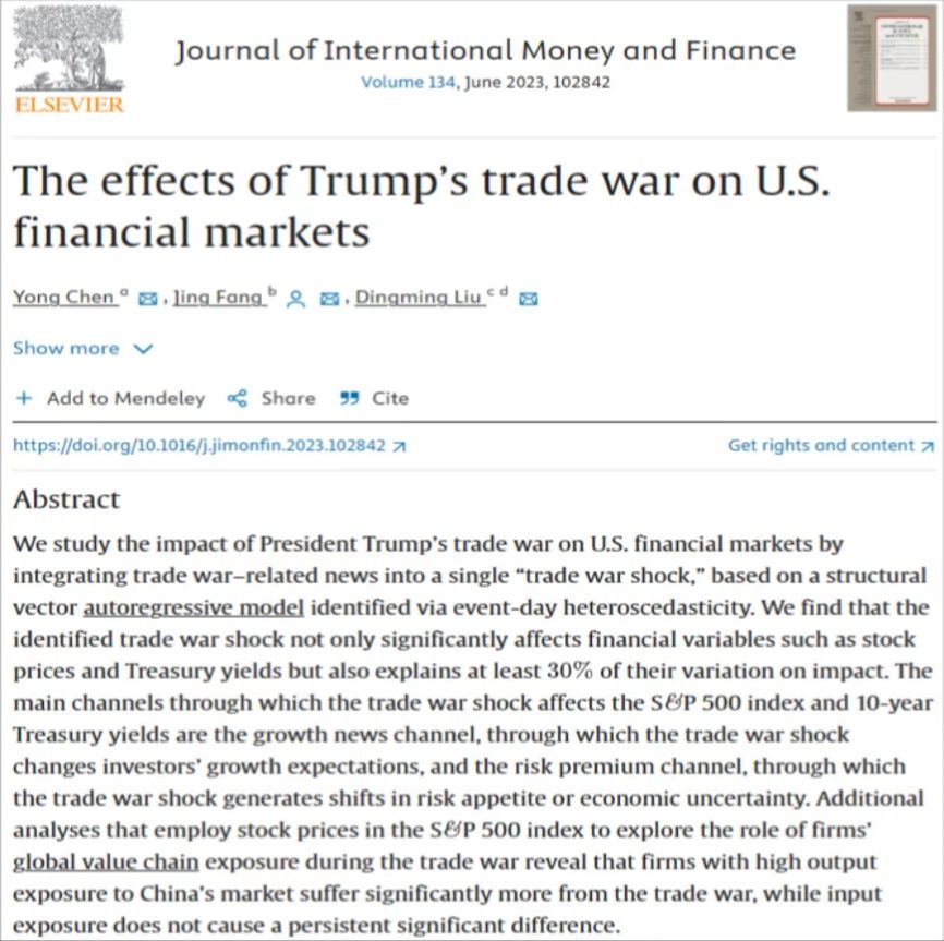 足球现场比分 方晶副教授与西南财经大学Yong Che、厦门大学Dingming Liu的合作论文“The effects of Trump’s trade war on U.S. financial markets”在《Journal of international Money and Finance》期刊上发表。