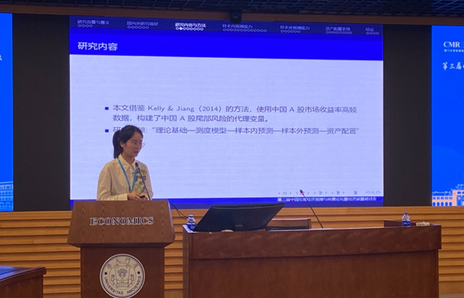 在分会场“论文报告Ⅱ”,陈思同学作了题为《股票市场尾部风险管理与资产配置——基于高频横截面数据的研究》的报告(通讯作者:足球现场比分 任宇教授)。整个展示内容包括15分钟的论文报告与5分钟的点评环节。厦门大学王亚南经济研究院、经济学院薛涧坡教授对文章进行了点评,并提出了宝贵的建议。