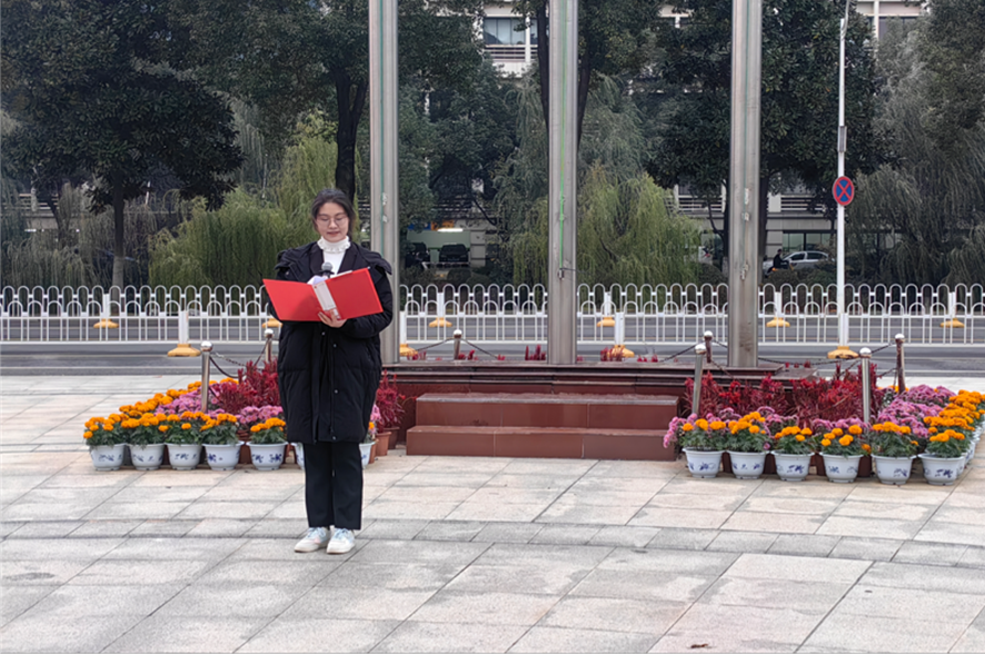 首先,2021级本科生代表丁小原同学进行了以“坚定红色信仰之心,树立学术报国之志”为题的国旗下演讲。她带领全体成员重温中国科技百年奋斗史,缅怀先烈学术报国事迹,感悟红色精神,坚定红色信仰;同时结合学院治学成果与自身学术经历,抒发了我辈青年学术报国之志。她引用习近平总书记给青年的寄语,激励文澜学子认真学习党的历史、努力钻研专业课程,运用所知所学为党和国家的事业作出贡献。