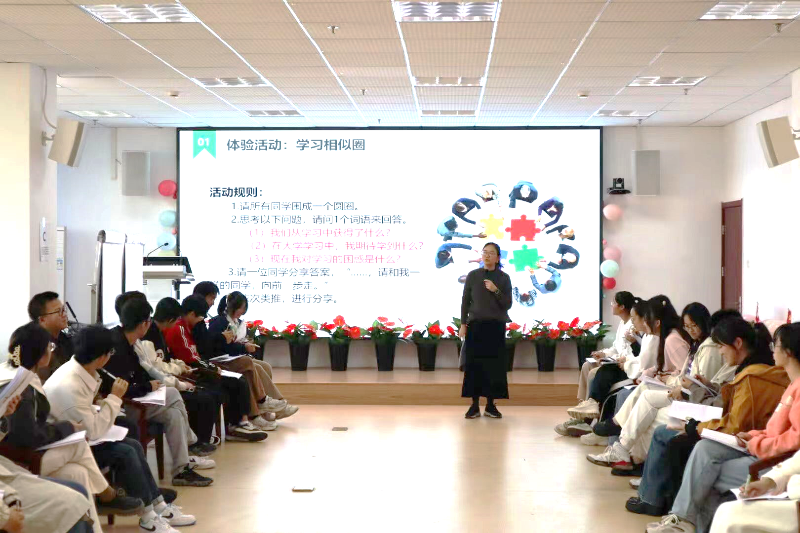 11月18日下午,第二期活动在武汉理工大学心理教育中心周树芝老师的带领下围绕人际关系处理和时间管理展开。在人际关系处理环节,周老师带同学们玩了“相逢在指尖”“桃花朵朵开”“冲出包围圈”“疾风劲草”四个游戏,这不仅调动了同学们的参与热情,更让同学们明白相互合作,彼此信任的重要性,也加强了同学们对人际关系的理解。在时间管理环节,周老师通过“撕纸游戏”“绘制时间饼图”等活动,提高了同学们的时间管理意识。随后,周老师讲解了时间管理的四象限,并鼓励同学们动手画出自己的时间象限,绘制目标平衡轮,这让同学们学会合理管理时间,提高效率。