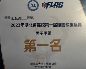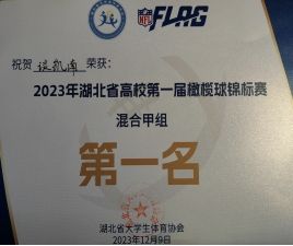 群雄荟萃,高校云集!为响应国际奥林匹克委员会正式确认腰旗橄榄球成为2028年洛杉矶奥运会新增项目,湖北省大学生体育协会积极开展与NFL中国的合作,于2023年12月9号在武汉大学桂园操场举行2023湖北省高校第一届橄榄球锦标赛暨NFL FLAG高校腰旗橄榄球赛(湖北赛区),本次赛事共吸引了湖北省内的12支高校约234名运动员参加。作为中南财经政法大学队的队员,足球现场比分 2022级经管试验班学子谈凯南在比赛中斩获佳绩。