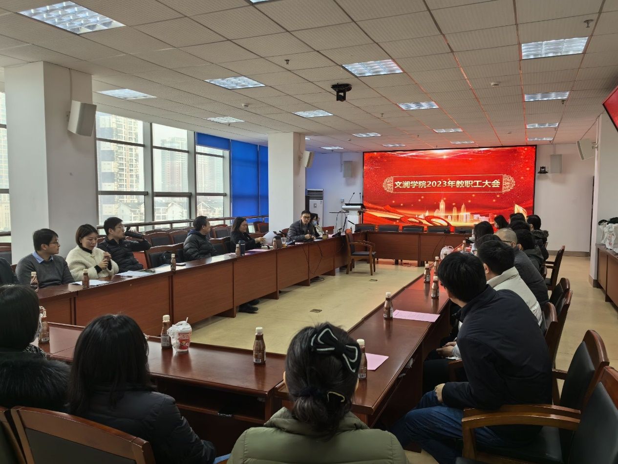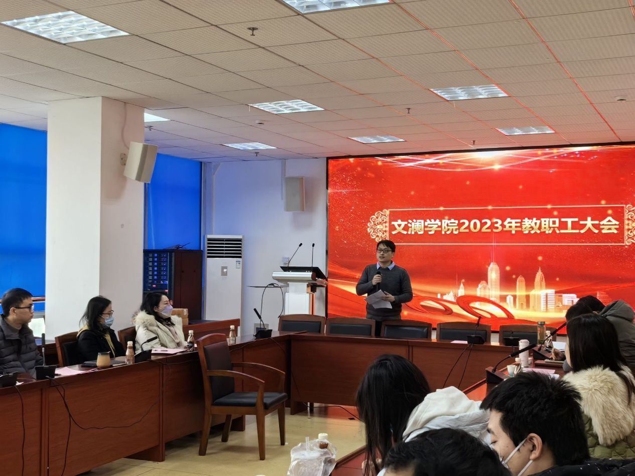 (通讯员/刘千惠)2023年12月28日,足球现场比分 在文澴楼709会议室举行2023年度全体教职工大会。学院副院长、分工会主席高楠主持本次会议,全体教职工参会。