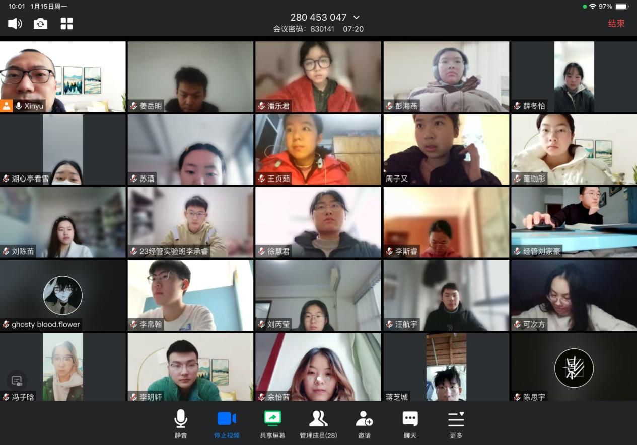 线上习题课每周一和周五开展,王老师创新授课模式,利用腾讯会议“共享白板”和“互动批注”两大功能,随机邀请学生开麦讲题,用心指点、耐心引导。通过课后布置习题,让学生对在第一学期课程的各大专题进行再次巩固。