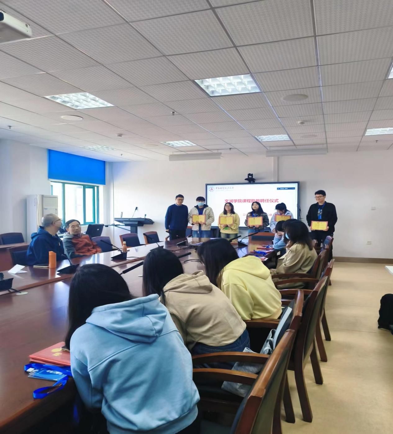 最后,与会老师向受聘助教颁发了助教聘书和助教证。