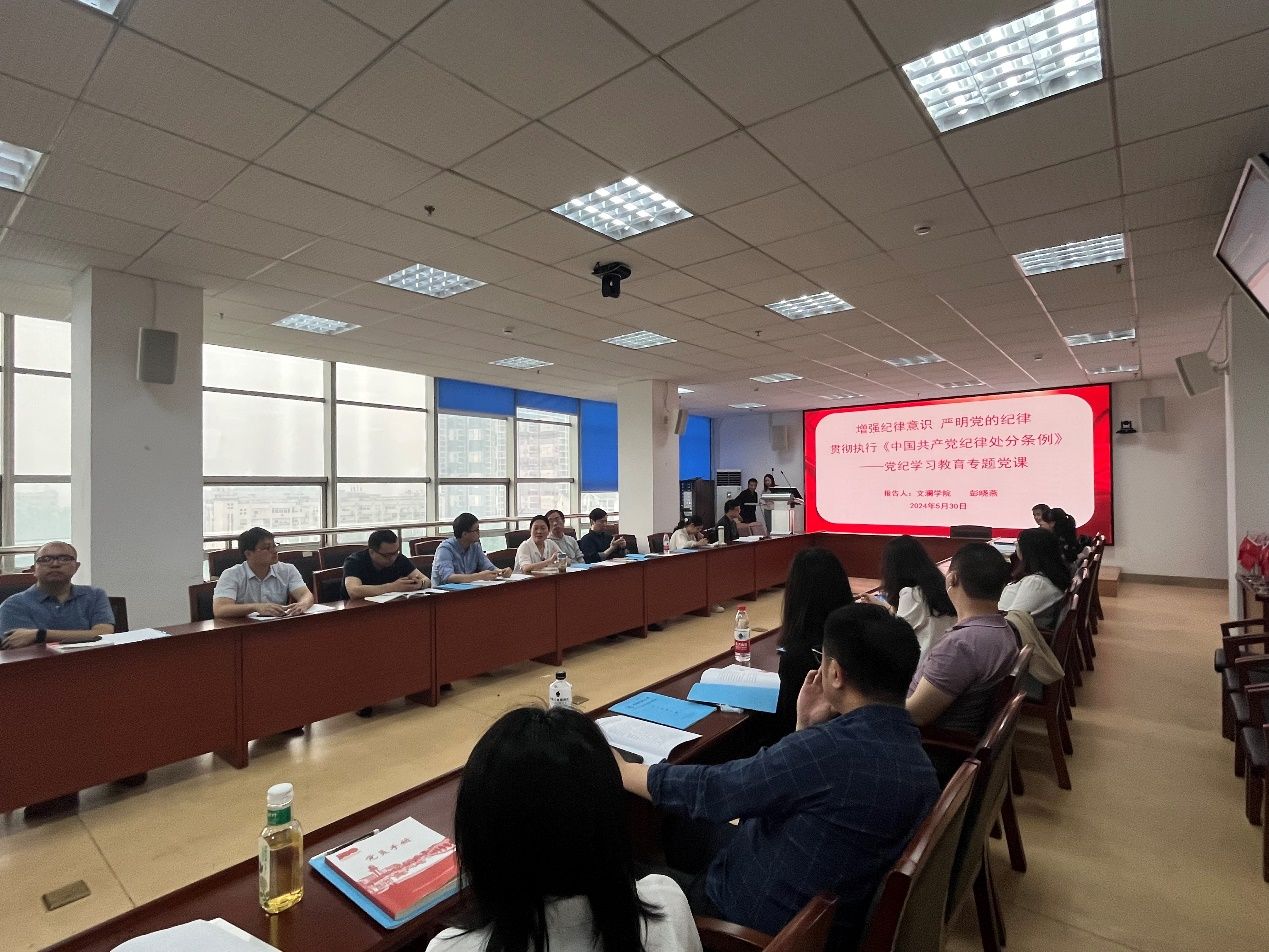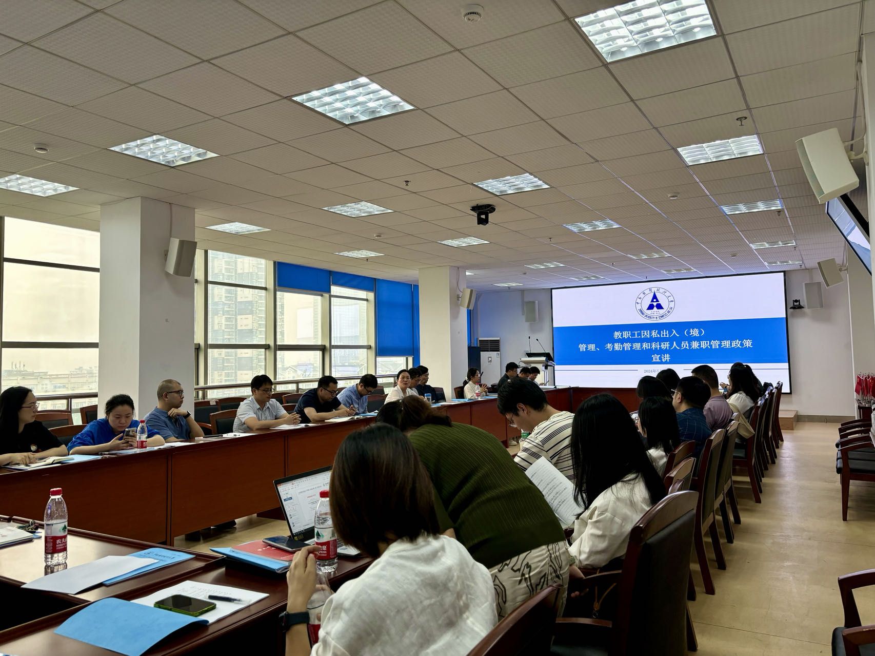 党日活动结束后,学院全体教师参与了五月教师思想政治与师德师风理论学习,党政办主任、行政党支部纪检委员祖宝璐宣讲了学校对于教职工因私出入(境)管理、考勤管理和科研人员兼职管理的最新政策,并解读了相关行为准则与规范。