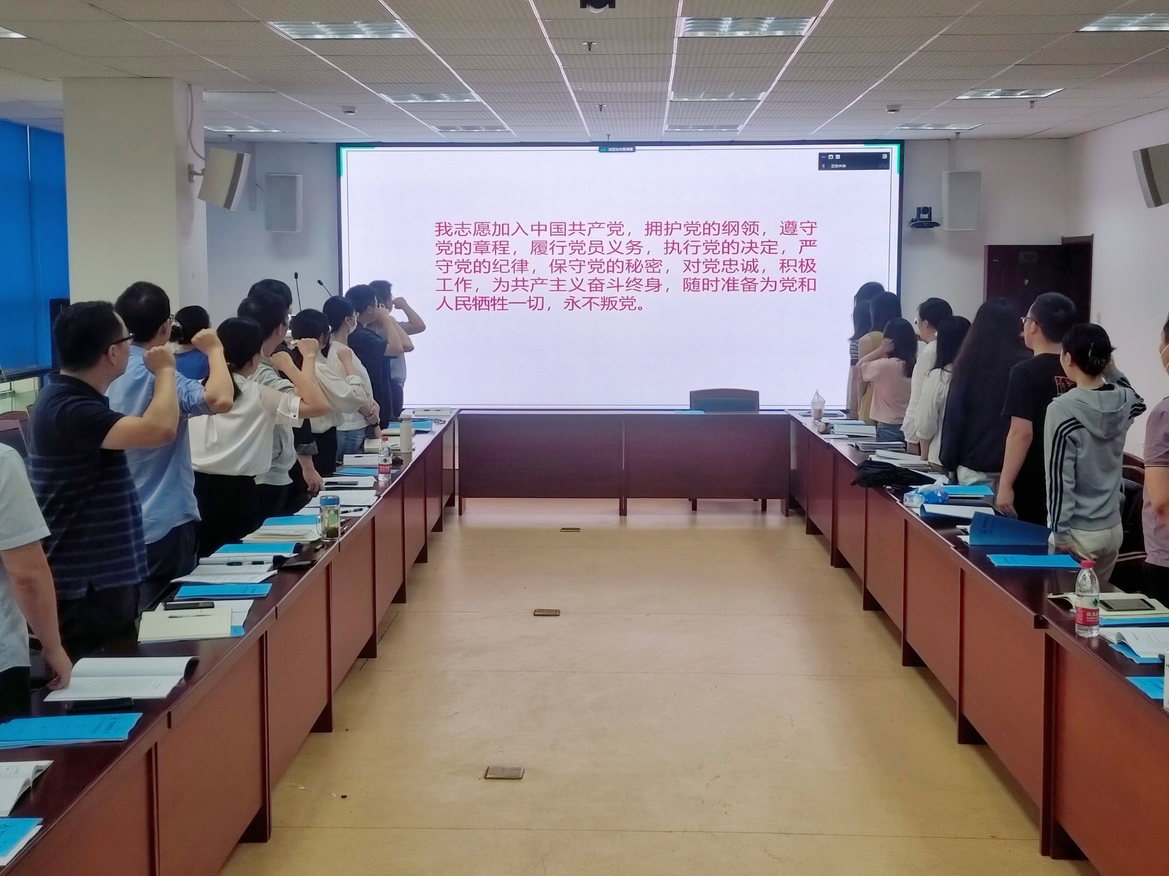本次党日活动第一项议程为重温入党誓词,集中学习《中国共产党章程》相关内容。师生党支部组织委员王文晓同志领誓,师生党支部宣传委员杨璨同志领学《中国共产党章程》第八章第四十七条。