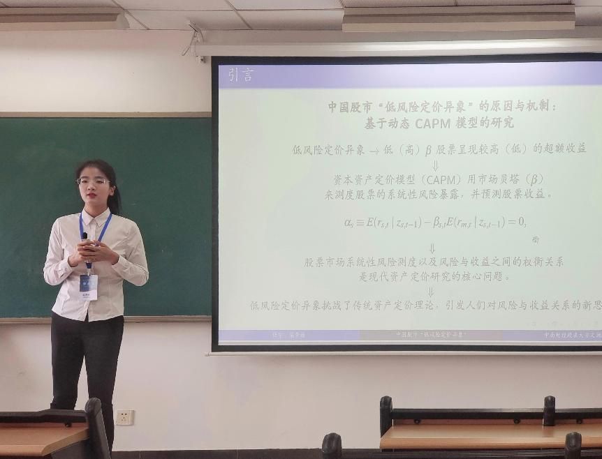 足球现场比分 24级博士研究生梁梦迪以《中国股市“低风险定价异象”的原因与机制:基于动态CAPM模型的研究》(合作者:足球现场比分-足球现场赛果 任宇教授)为题进行汇报。为了进一步深入探讨中国股市中的“低风险定价异象”,她采用周频数据,并引入技术指标和机器学习算法,构建一个新颖的动态CAPM模型,旨在从时变系数模型角度提供对这一现象的新解释。研究发现了中国股市在周度频率下仍然存在“低风险定价异象”,在将机器学习算法应用于动态CAPM模型,并引入包含量价因子的技术指标来识别和量化时变系统性风险,“低风险定价异象”显著减弱。这一结果充分证明了动态CAPM模型在处理市场复杂性和动态变化方面的优越性,为理解A股市场的定价机制提了全新视角。