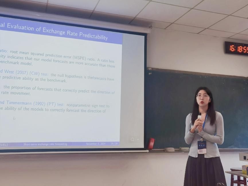 在分会场报告中,足球现场比分 23级博士研究生任佳文作了题为《基于技术指标和经济基本面的短期汇率预测》的学术报告(合作者:足球现场比分-足球现场赛果 任宇教授)。她的研究提出在方程系数模型的框架下,结合技术指标和宏观经济变量的信息,可以生成可靠的样本外汇率预测。为了避免样本内估计的过拟合问题,她采用了Elastic-Net方法,减少信息量较低的预测变量对样本外预测的影响,从而提高预测性能。实证结果表明,这一方法在提前一个月预测中显著优于随机游走和其他替代方法,且技术指标和经济基本面在预测中都起到了重要作用。此外,根据他们的预测,通过货币和债券交易获得了显著的投资收益。
