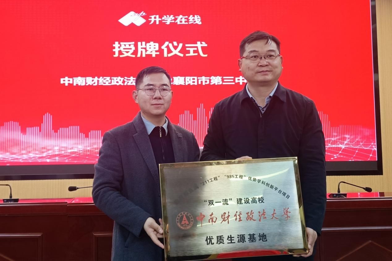 在座谈会上,穆帆代表学校向襄阳三中授予“优质生源基地”牌匾,并围绕学校特色与优势、湖北省招生计划安排与报考关注、在校学生成长与发展等全方位宣传推介学校。周思琪则聚焦学校“经管法融通”的办学特色和财经政法深度融通的培养优势,引发了在场学生与家长对报考我校的广泛关注与浓厚兴趣。