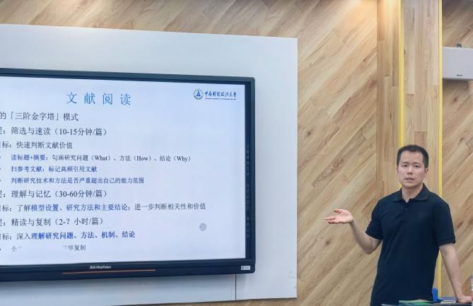 曾教授以“文献管理与高效阅读”为主题展开系统性讲解。他向同学们分享了如何搜索文献、使用数据库和高效管理文献。在阅读策略层面,曾教授提出分阶段推进法;强调文献综述的撰写需注重逻辑关联性与评价深度,关注文献的时效性与权威性,以增强综述的学术价值。