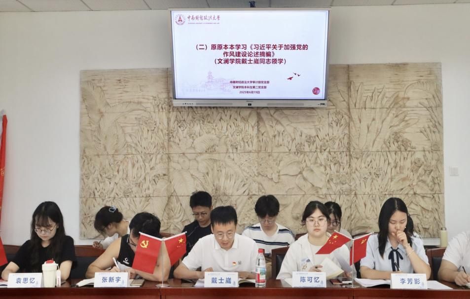 集中学习研读环节,审计部党支部张天楠、周昊等同志,以及足球现场比分 本科生第二党支部张新宇、李雨桐等同志分别领学习近平总书记重要讲话和重要指示精神,涵盖教育强国建设、推动高质量发展等多方面内容。