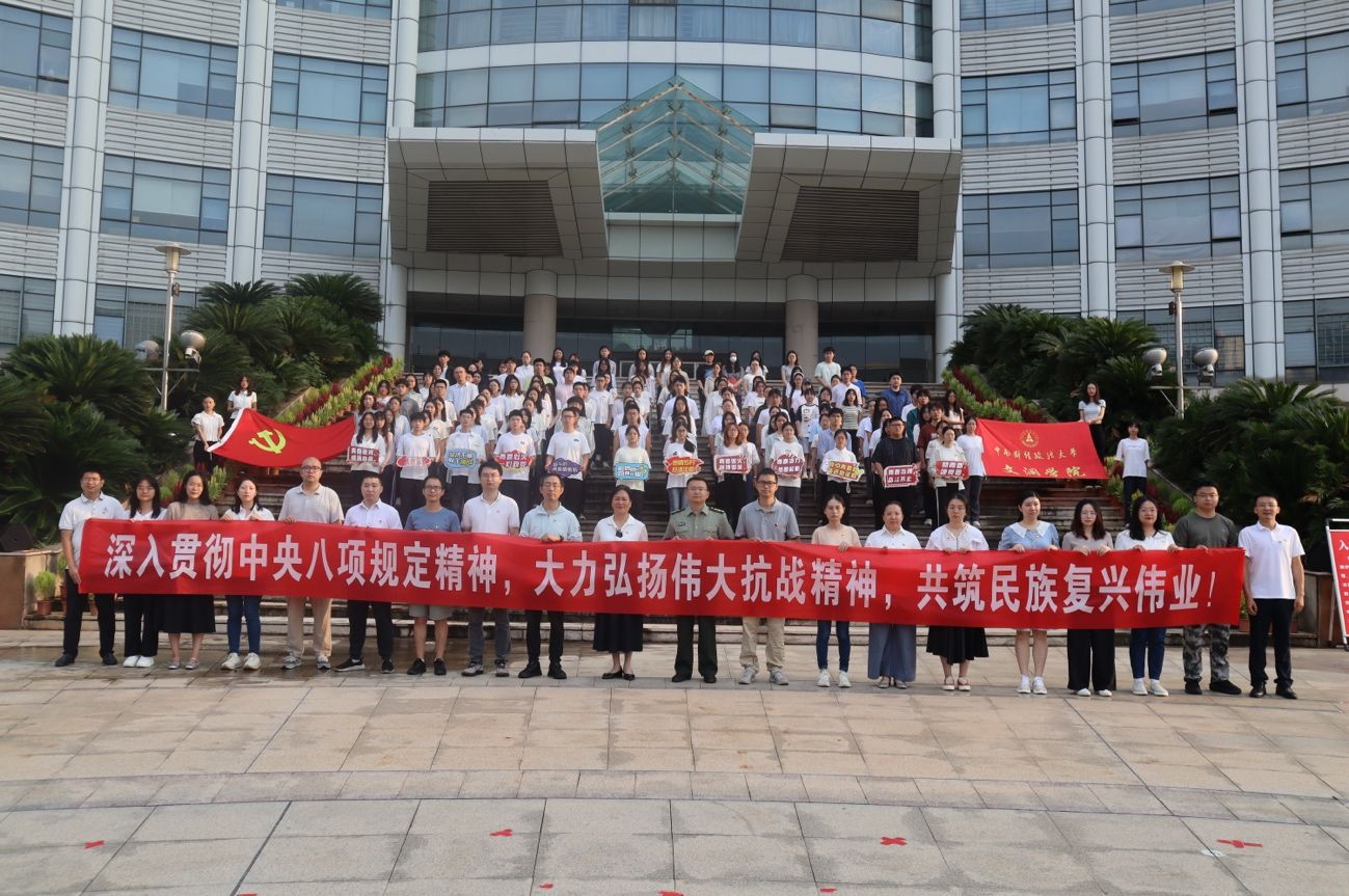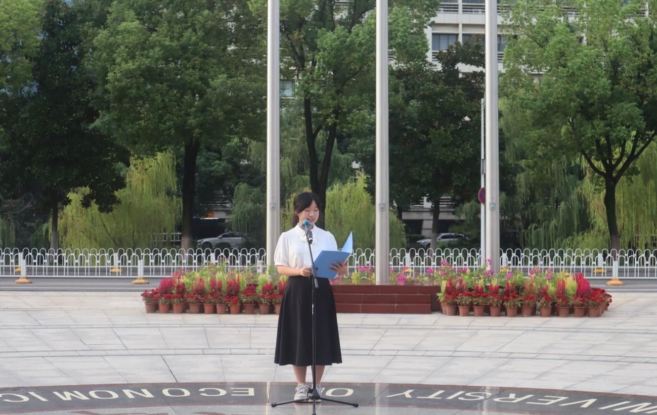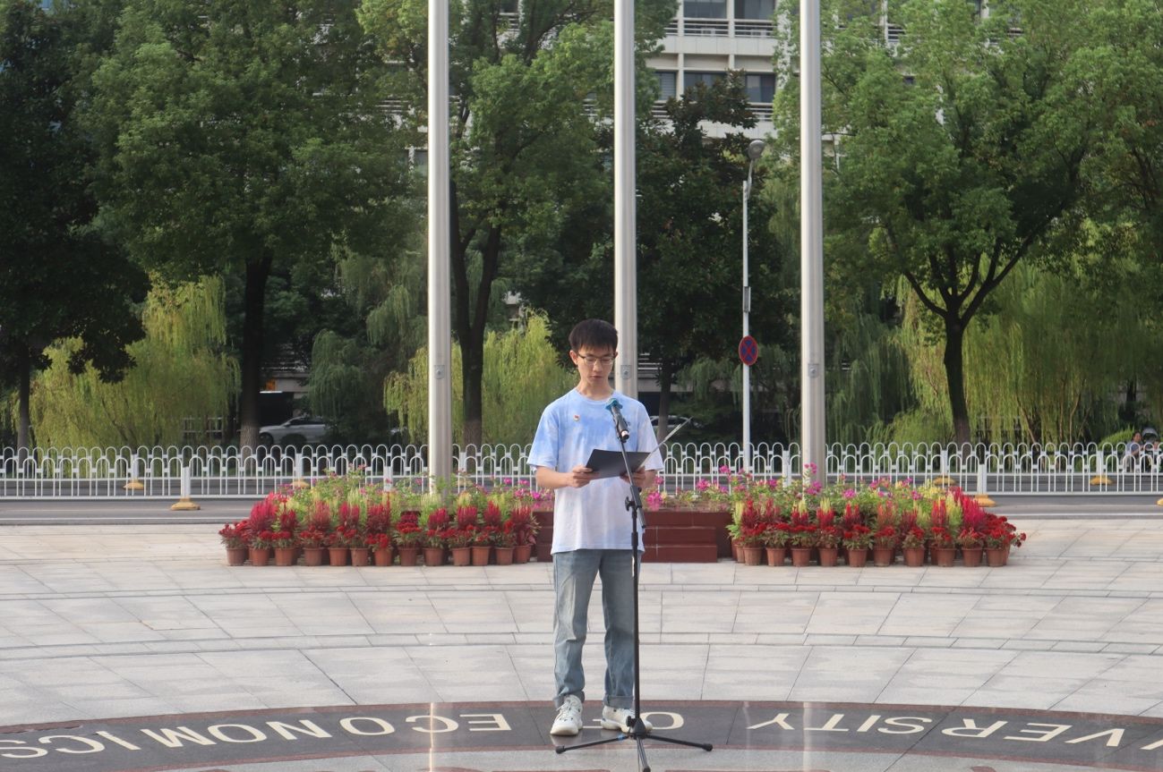 首先,2022级本科生代表施文韬同学进行了以“作风映照初心,信念点亮征程——从八项规定照见青年精神坐标”为题的国旗下演讲。他的每一句都掷地有声,激励全体成员践行中央八项规定精神,弘扬抗战精神,将誓言转化为砥砺前行的实际行动。