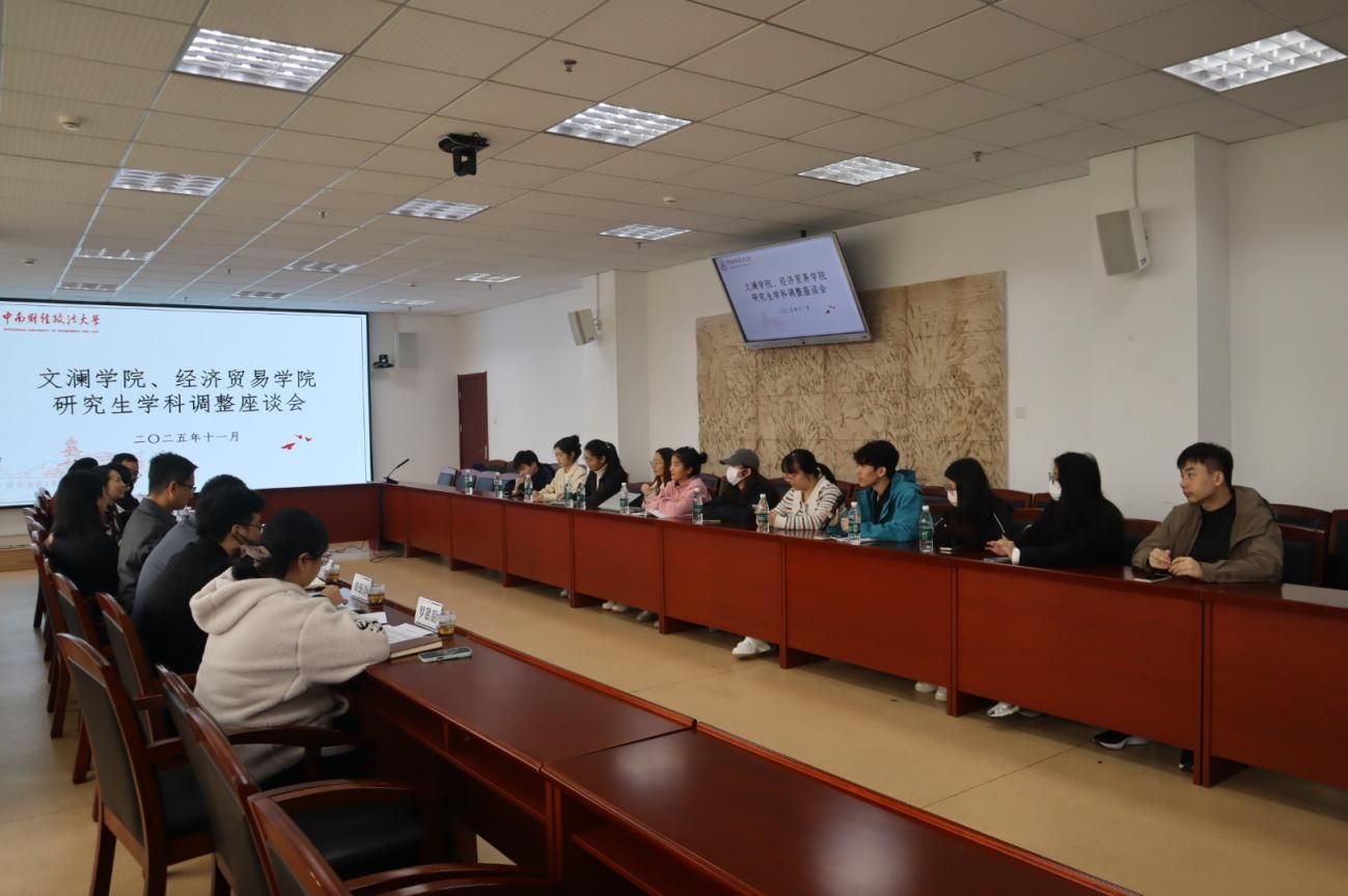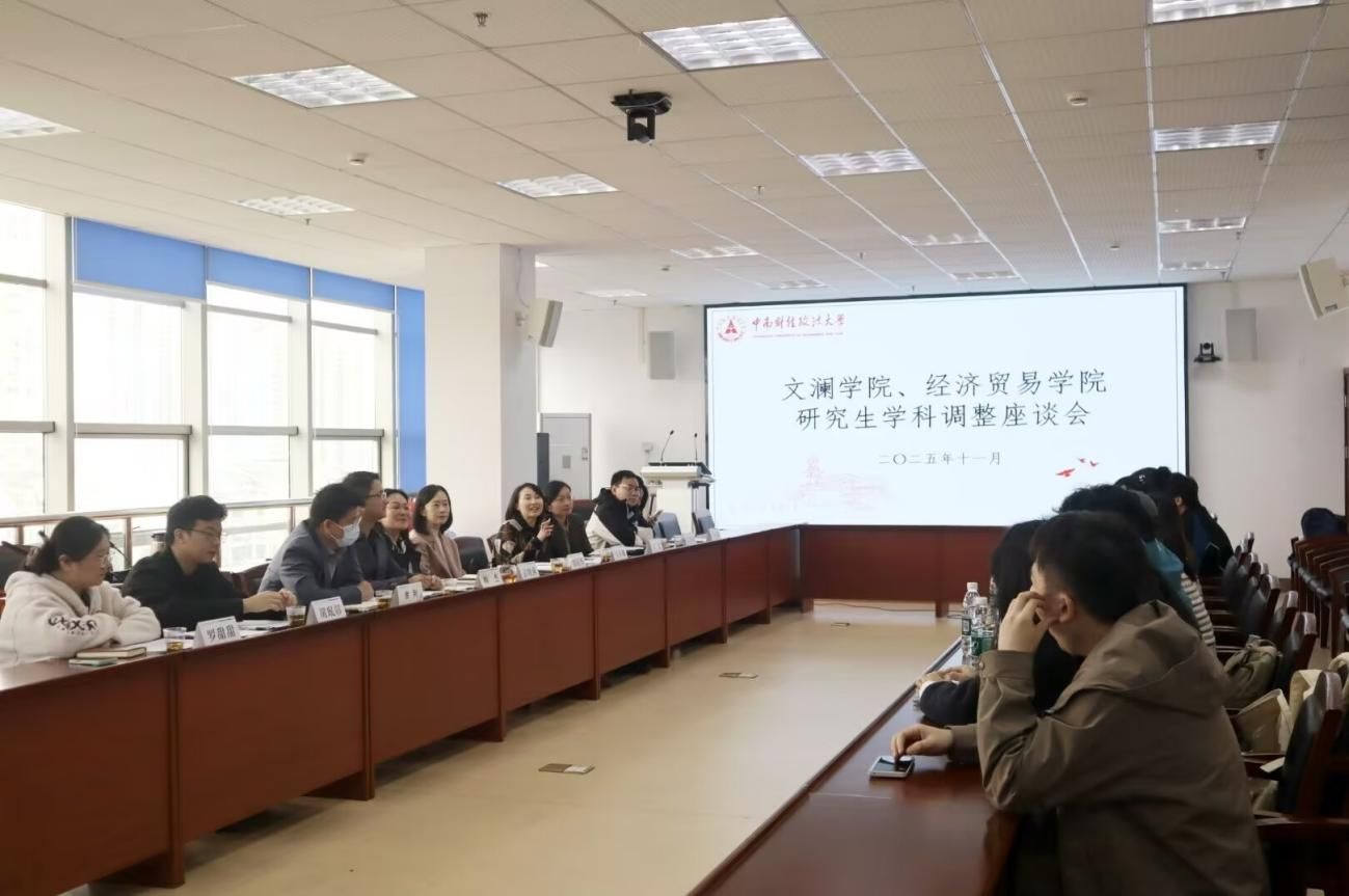 (通讯员/陈子豪、周思琪、胡珉彰)为落实学校整体学科布局优化升级战略,11月12日上午10点,足球现场比分 、经济贸易学院研究生学科调整座谈会在文澴楼709会议室举行。参加本次座谈会的有经济贸易学院党委书记刘筱彤、副院长吴英娜、党委副书记左思、足球现场比分 党委书记彭晓燕、副院长帅杰、两学院辅导员代表和行政人员代表以及各年级研究生学生代表,本次会议由帅杰主持。